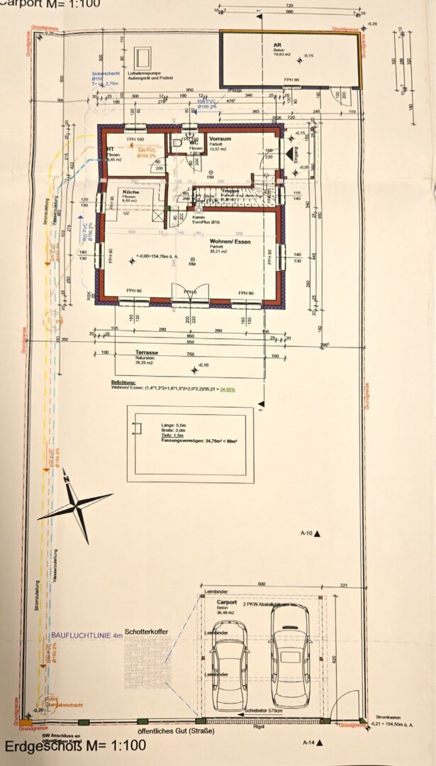 * Wohnfläche von rund 136m², bestehend im Erdgeschoß aus: Vorraum, WC, Abstellraum, Technikraum, Wohnküche