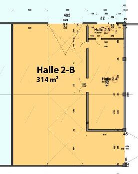 „Halle 1-A“ bietet eine Fläche von 375 m², beheizbar und beleuchtet. Ein großes