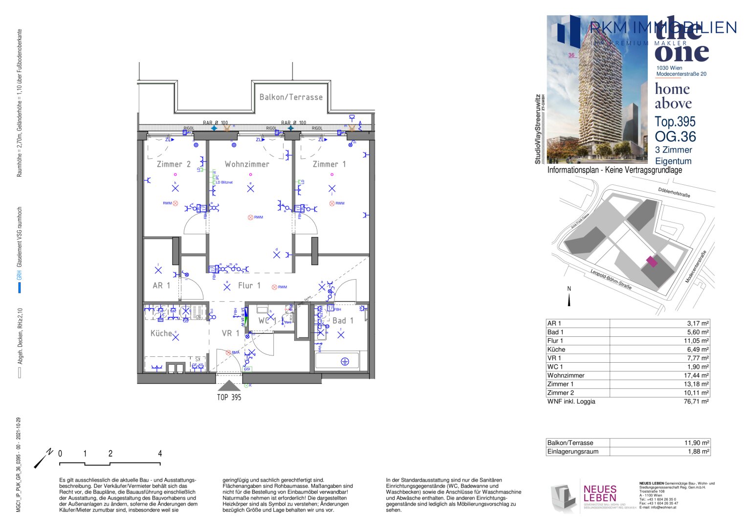 In der 36. Etage eines modernen Wohnhauses im begehrten 3. Bezirk erwartet Sie eine exklusive Wohnung, die nicht nur durch ihre Lage, sondern auch durch ihre Ausstattung überzeugt. Auf großzügigen 76,71 m² erstrecken sich drei lichtdurchflutete Zimmer, die Ihnen viel Raum