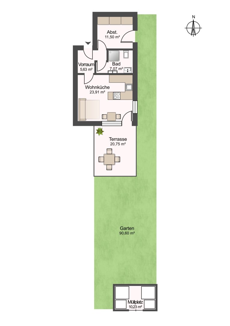 Die durchdachten Grundrisse bieten 2 bis 3 Zimmer auf rund 42–66 m² Wohnfläche. Jede Wohnung