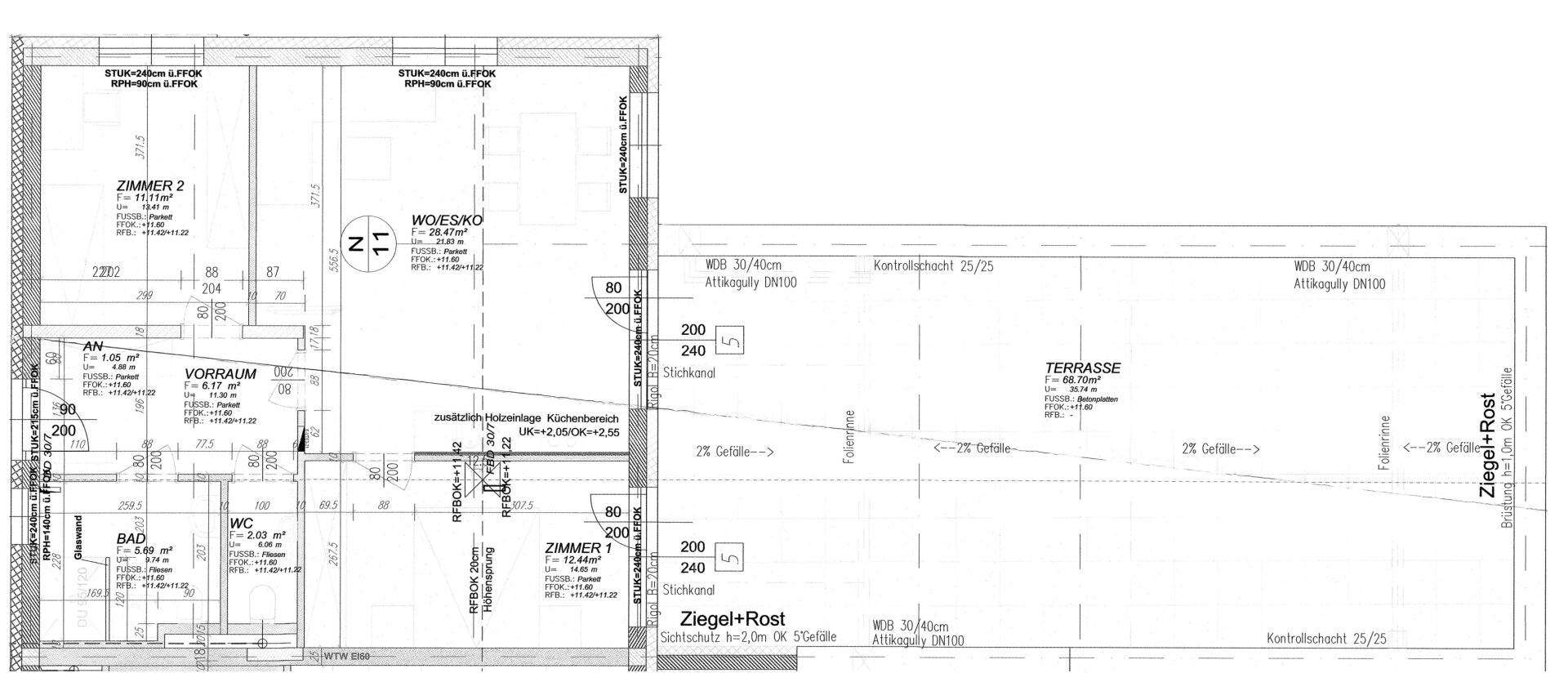 Balkon/Terrassen - Fläche: 68