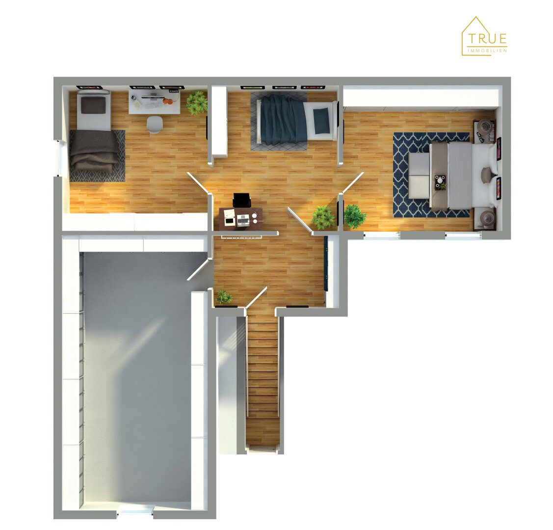 im Obergeschoß bestehend aus: Vorraum, Schlafzimmer, Wohnzimmer