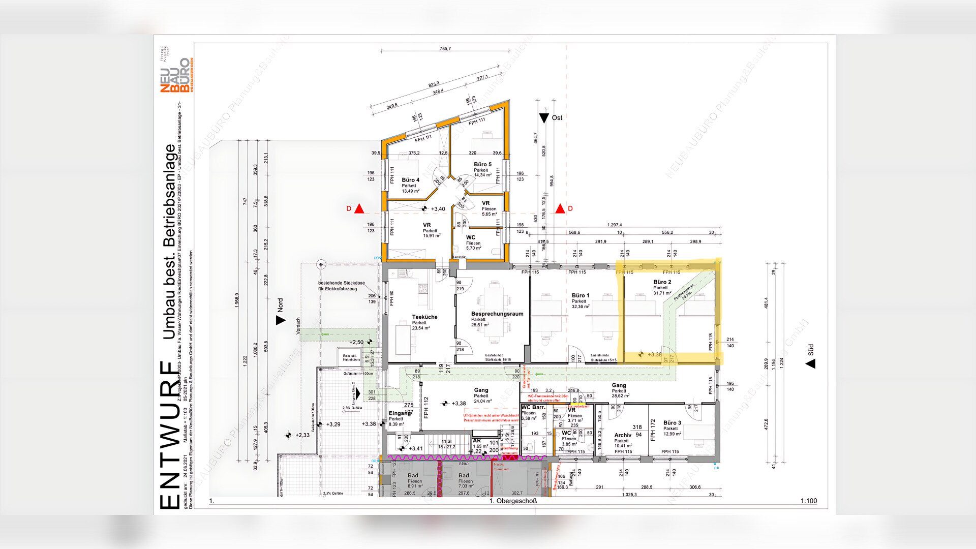 Zur Vermietung stehen zwei nahezu identische Büroeinheiten mit ca. 31,71 m² bzw. ca. 32,36 m² Nutzfläche in Ried im Traunkreis, Hauptstraße 2. Die Büros befinden sich im 1. Obergeschoss eines gepflegten Bürogebäudes und sind über einen gemeinschaftlich genutzten