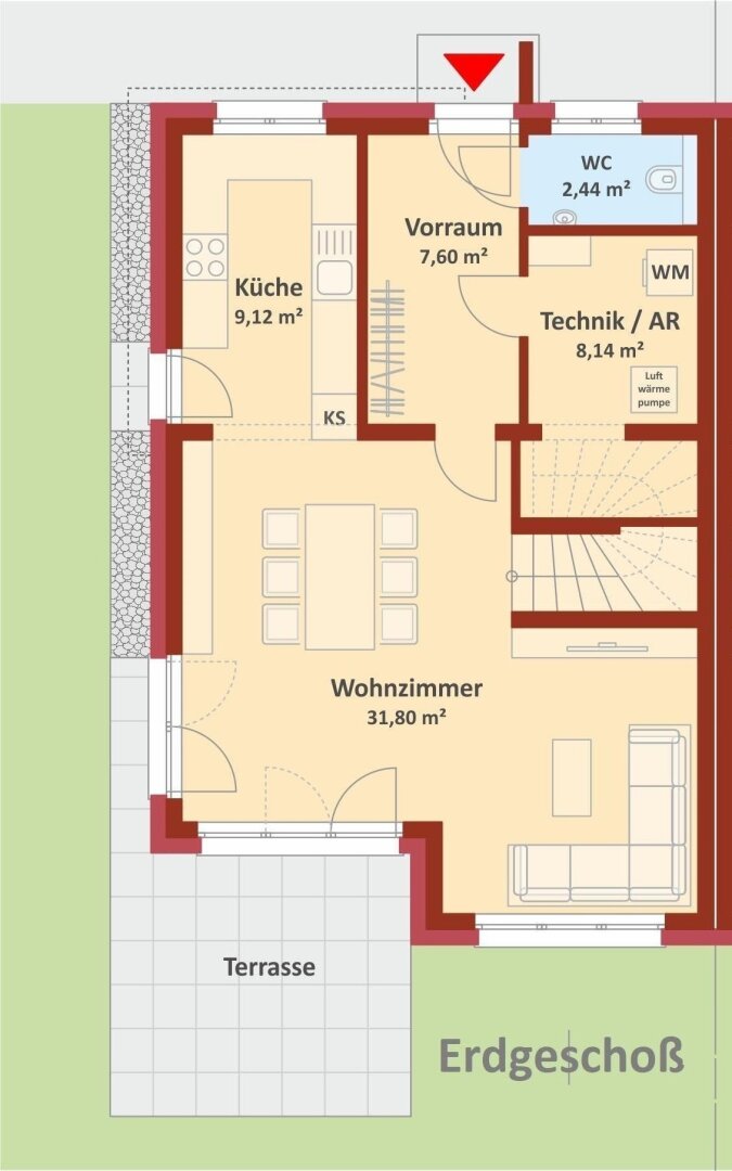 Das Objekt befindet sich am Ende einer ruhigen Sackgasse, wurde 2022 neu errichtet und präsentiert sich in einem neuwertigen Zustand. Das Haus ist schlüsselfertig und mit einer modernen Küche sowie einer hochwertiger Sanitärausstattung ausgestattet. Über die Fußbodenheizung ist im Sommer auch eine Kühlung möglich.