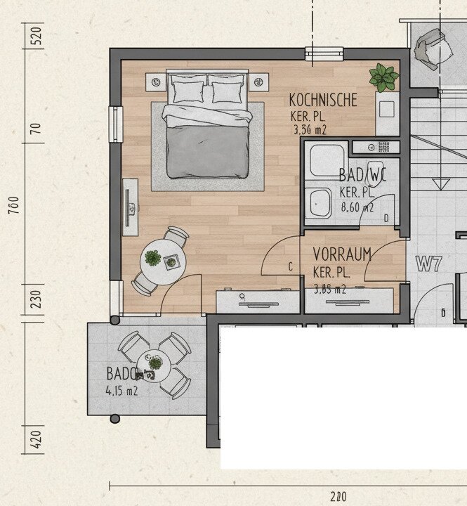 Die charmante Wohnfläche präsentiert sich in einem einladenden Stil und optimiert den