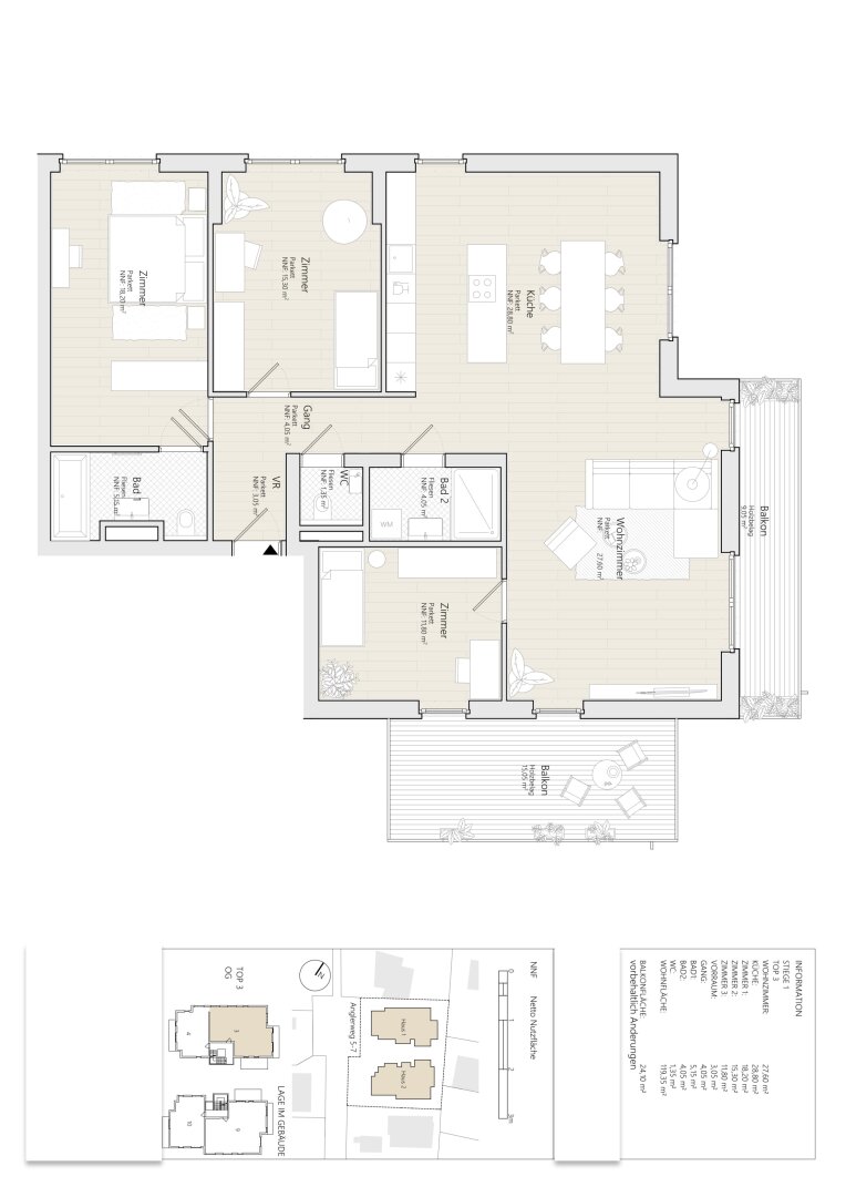 Zum Verkauf gelangt ein moderne und großzügige 4-Zimmer Erstbezugs-Wohnung am Anglerweg. Die Wohnung befindet sich im 1. Liftstock und ist süd-ost-seitig