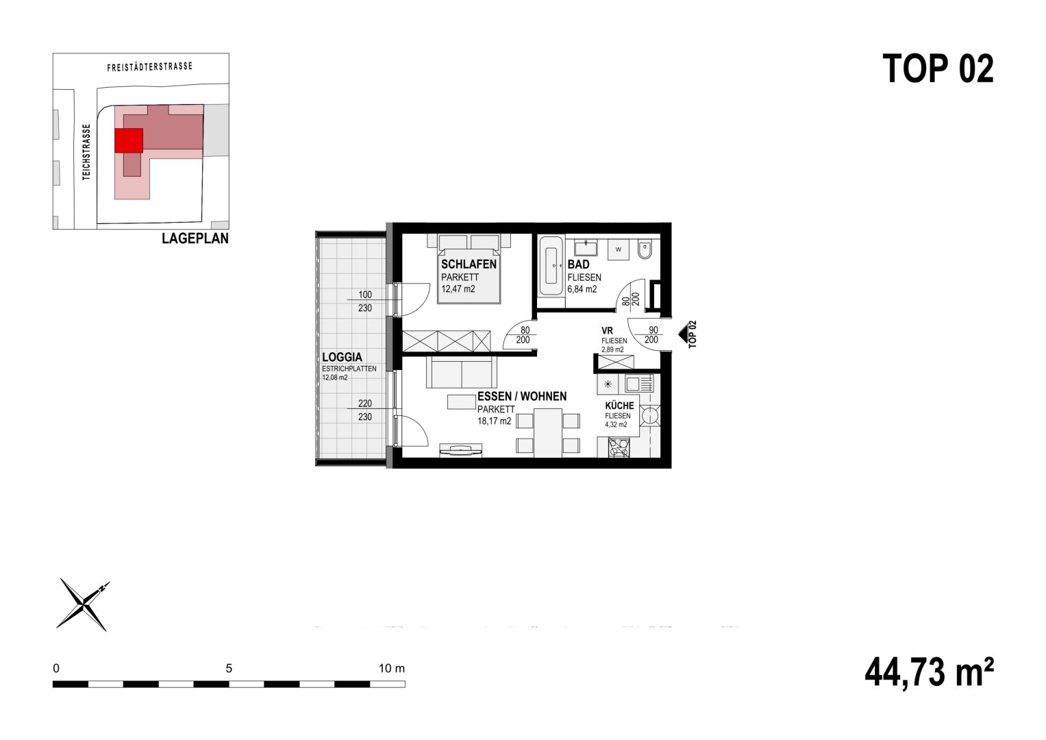 Diese moderne 2-Zimmer-Wohnung befindet sich im 2. Obergeschoss eines gepflegten Wohnhauses (Baujahr 2016) und bietet auf ca. 44,73 m² Wohnfläche sowie einer ca. 12,08 m² großen Loggia ein durchdachtes Raumkonzept, das ideal für Singles oder Paare geeignet ist. Aufgrund des Personenliftes ist die Wohnung barrierefrei erreichbar.