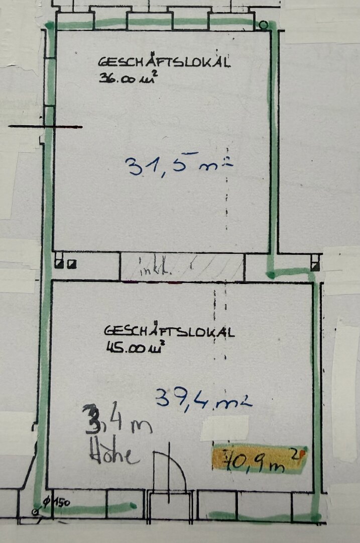 Plan des Nachbarlokales mit 70,9 m²