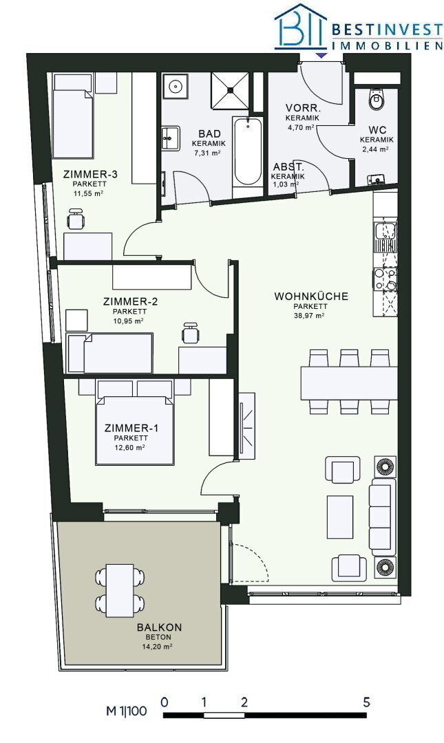 Kofferpacken und ab sofort einziehen – Top ausgestatteter Erstbezug, zentral gelegen. Langzeitmiete! NEUBAU Messequadrat in der Fröhlichgasse.