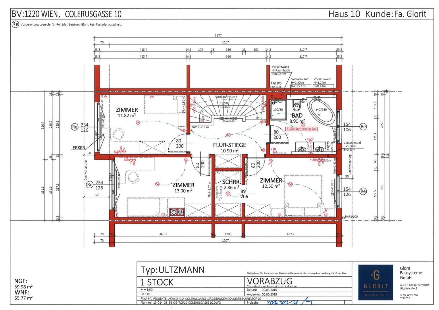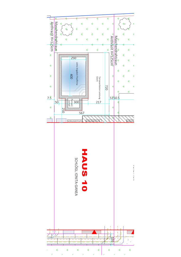 Vorraum, gegliedertes Wohnzimmer (Wohnbereich / Essbereich) mit offener Küche, kleiner Garten mit Swimming-Pool, Stiegenaufgang – oben offen zur Galerie, 3 Schlafzimmer (Schlafzimmer mit begehbaren Schrankraum, Kinderzimmer, Büro), geräumiges Bad (mit Fenster) mit 2 Waschbecken,