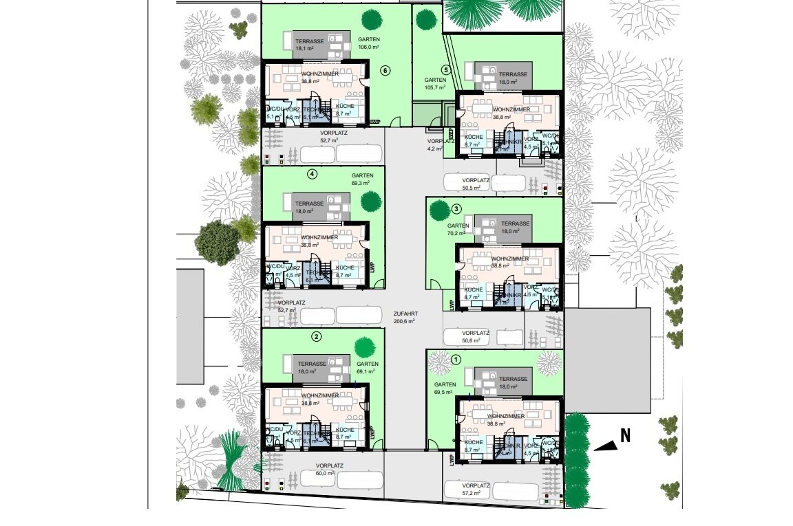 Entdecken Sie modernes Wohnen inmitten einer traumhaft schönen Umgebung. Die 6 Einfamilienhäuser bieten nicht nur Platz für die ganze Familie, sondern schaffen auch ein Fundament für Jahrzehnte, das Ihrem Lebensmittelpunkt eine solide Basis verleiht.