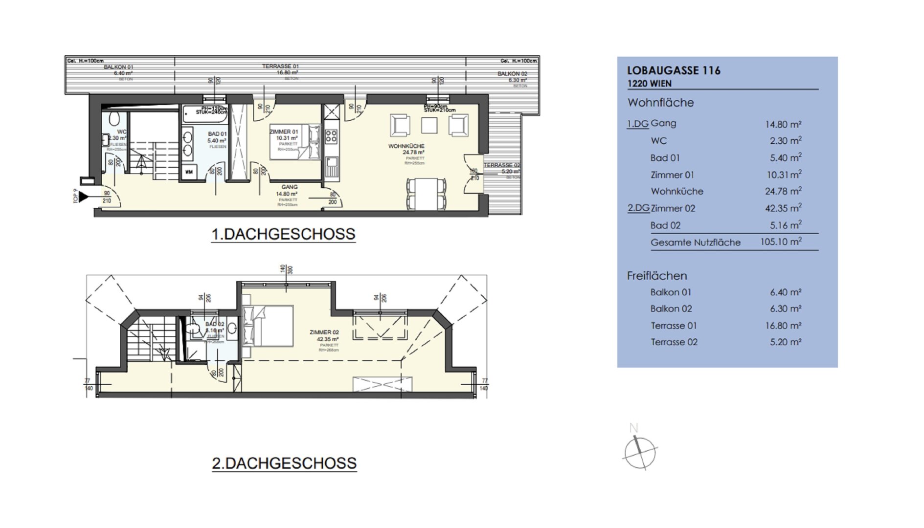 LOBAU WATERFRONT FLATS – MAISONETTE – 34QM TERRASSEN – KLIMA UND GARAGE!!