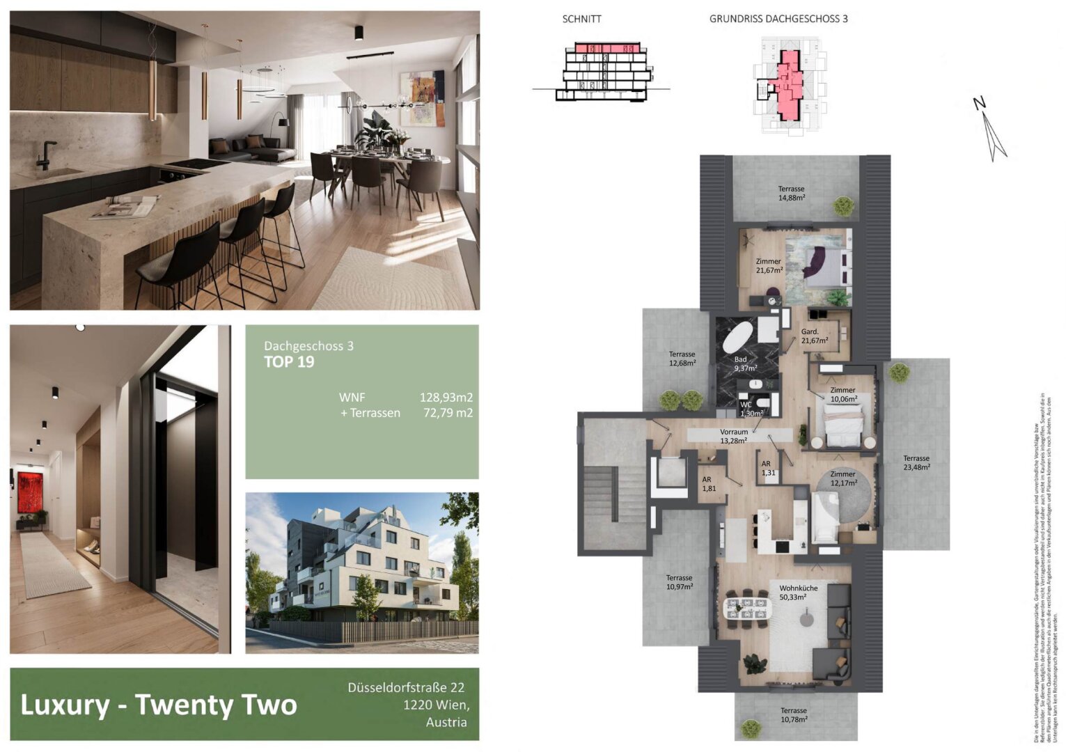 Neu am Markt und ein absolutes Highlight in Kagran! In der Nähe vom Donauzentrum und der Alten Donau wird ein exklusives Penthouse mit 5 Terrassen errichtet, welches sämtlichen Komfort und eine luxuriöse Ausstattung bietet: