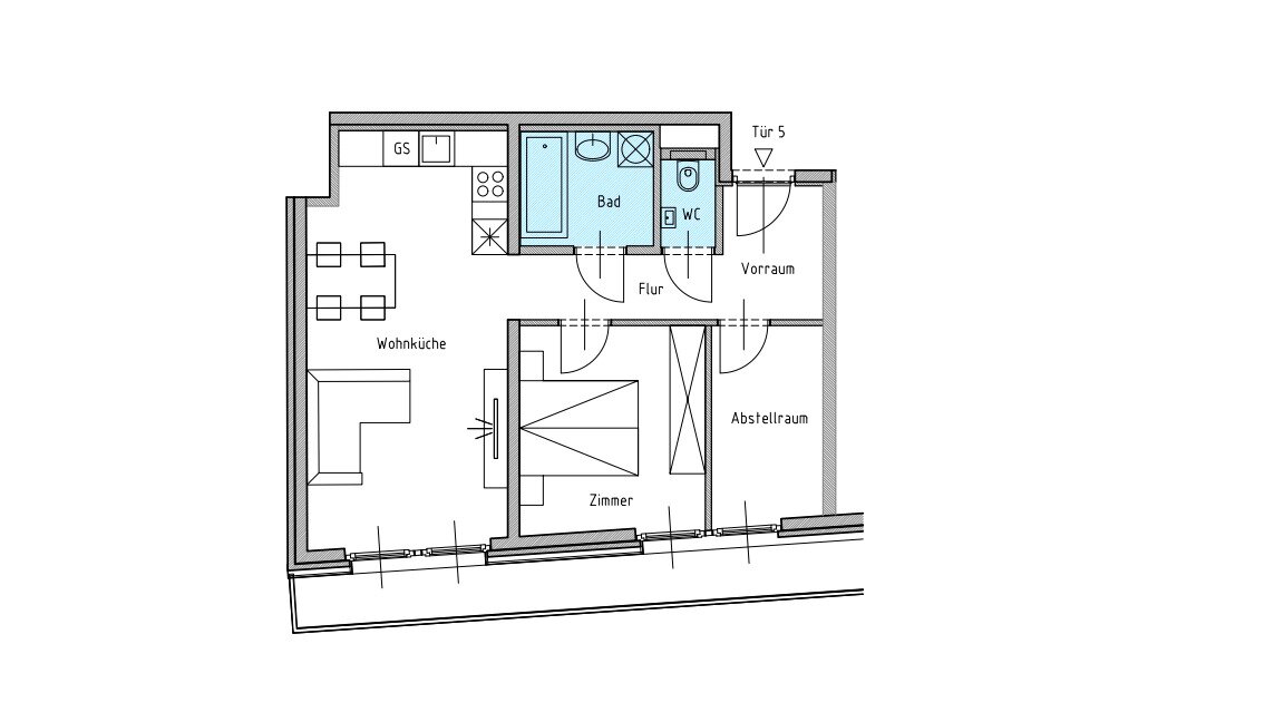 Raumaufteilung: TOP 5, 1. Obergeschoss, straßenseitig ausgerichtet