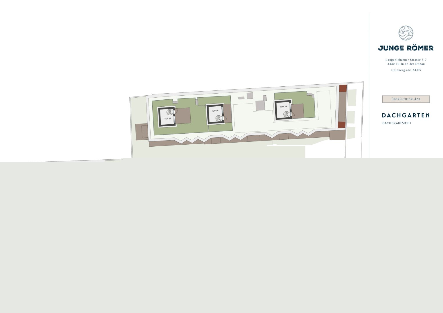Mit dem Neubauprojekt „Junge Römer“ entstehen in der Langenlebarner Straße 5 insgesamt 36 Eigentumswohnungen in zentraler Lage nahe Donau, Bahnhof und Stadtkern. Zur Auswahl stehen Gartenwohnungen, Wohnungen mit Balkon sowie Dachgeschosswohnungen mit großzügigen Dachterrassen, Sonnendecks und Weitblick.