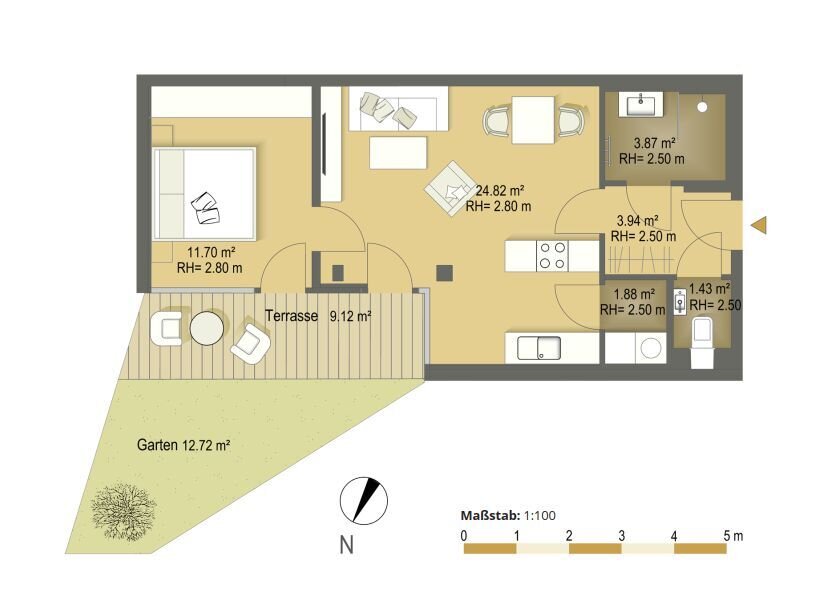 Diese Luxuswohnung besteht aus ca. 48m² Wohnfläche und