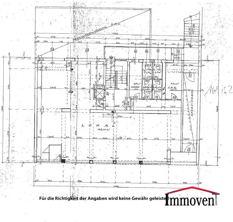 Die Geschäftsfläche verfügt über einen Raum im Erdgeschoss mit einer Größe von ca. 175 m², welche als Verkaufsraum gestaltet werden kann. Im Kellergeschoß befindet sich ein Lager mit einer Fläche von ca. 117 m². Der straßenseitige Zugang sowie die Möglichkeit von großflächiger