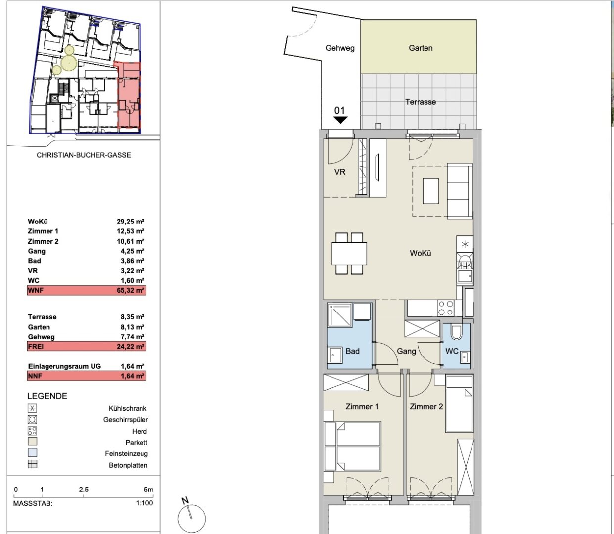 Zum Verkauf gelangt eine 3-Zimmer Erdgeschosswohnung in Hofruhelage in der Christian-Bucher-Gasse. Die Wohnung ist bereits mit einer hochwertigen Einbauküche ausgestattet und verfügt auch über eine Fußbodenheizung mittels Erdwärme sowie elektrischen Außenrollos
