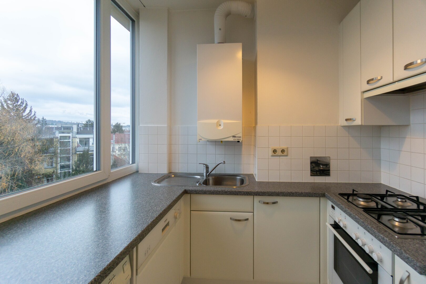 Die Wohnung ist mit einer voll ausgestatteten Küche inklusive sämtlicher Elektrogeräte versehen. Die Wohn- und Schlafräume