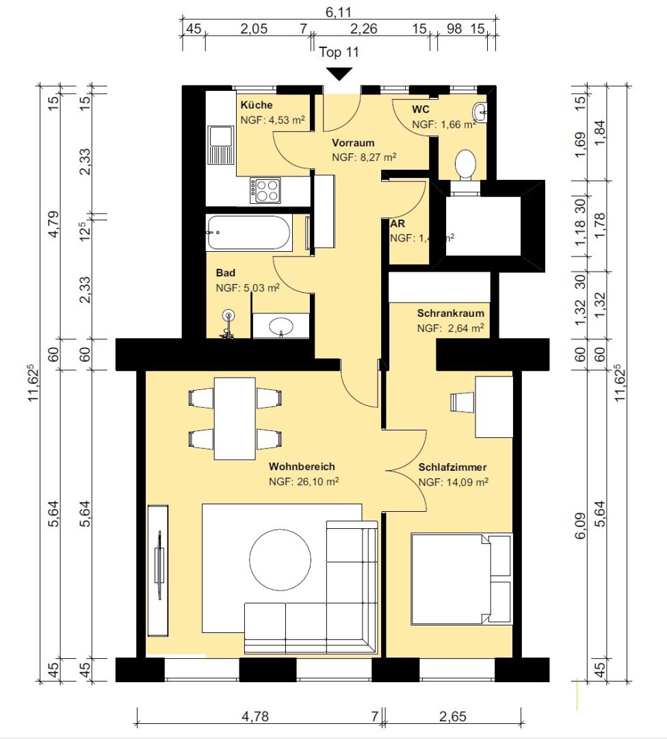 Diese 2,5 Zimmer-Wohnung erstreckt sich auf ca.