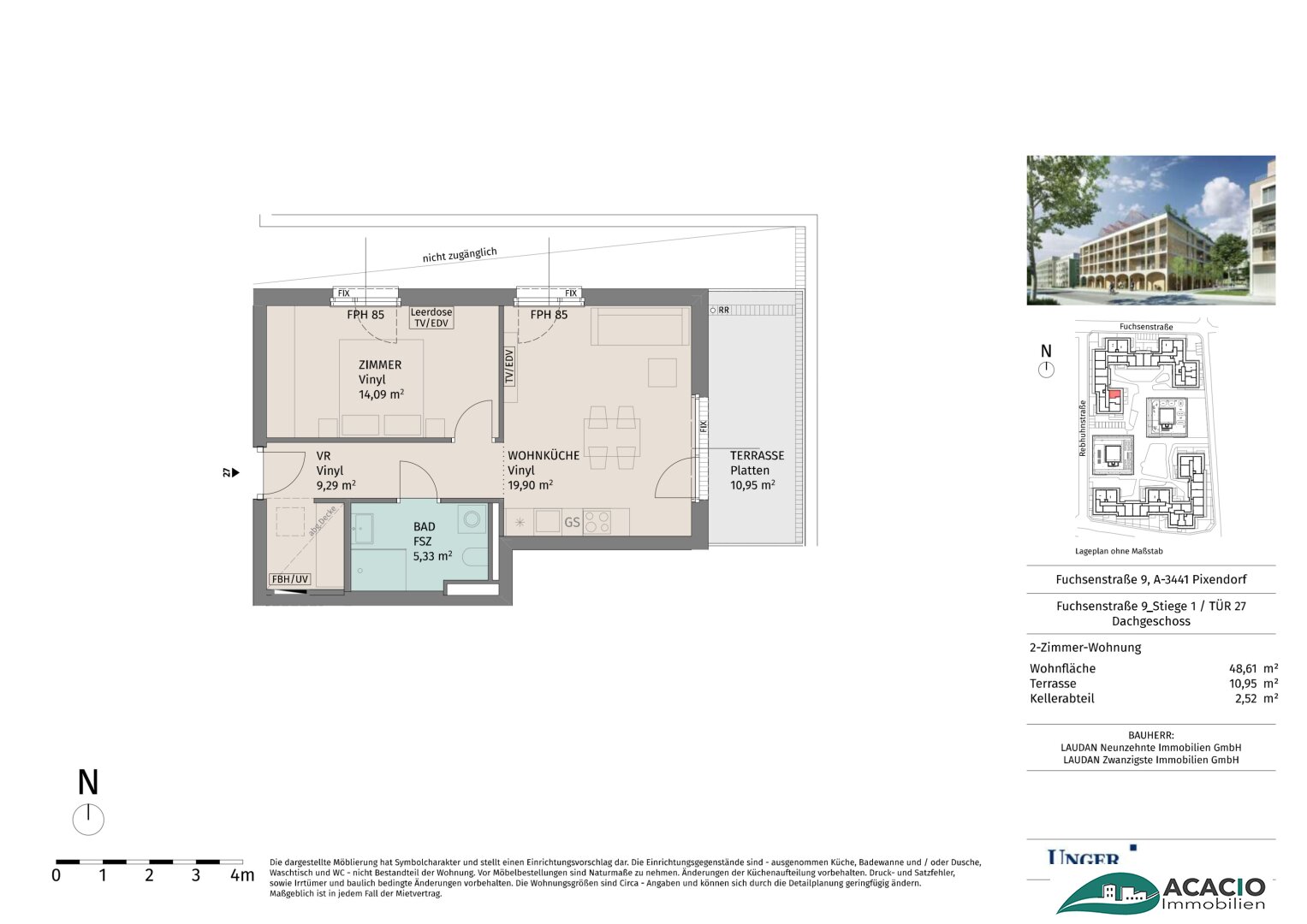 Diese hübsche 2-Zimmer-Neubauwohnung verfügt über eine Wohnfläche von ca. 48,61m² und eine großzügige Terrasse von rd. 11m².