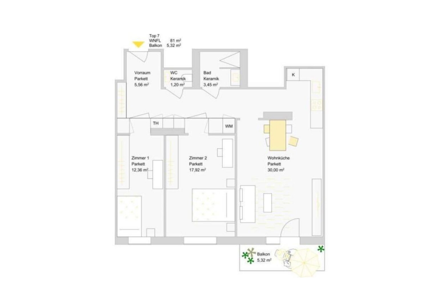 Diese Wohnung wurde kürzlich umfassend und stilvoll in modernem Design renoviert. Das gesamte Vorzimmer ist mit Holzvertäfelung ausgestattet, wodurch Zimmertüren und Stauraumlösungen harmonisch in die Wandgestaltung integriert werden. Dies sorgt für ein hochwertiges und zugleich wohnliches Ambiente. Die Raumaufteilung ist besonders effizient: Es wurden Garderoben sowie separate Schränke für Therme