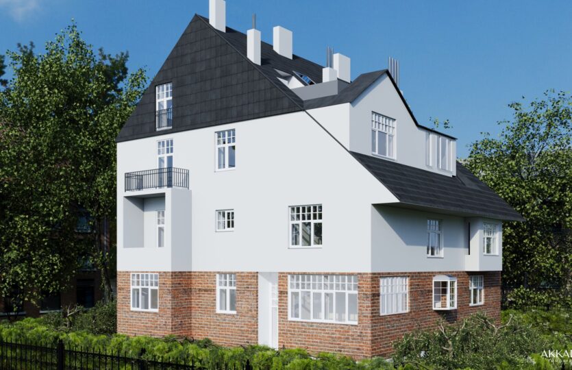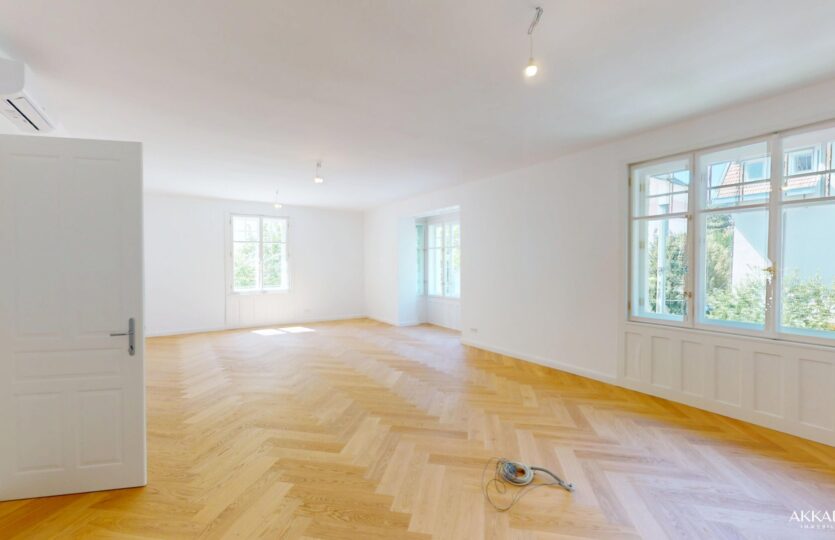 Die zur Jahrhundertwende errichtete Gründerzeitvilla wurde von Architekt Franz Zeller Junior geplant und besteht aus einem Tiefgeschoss und vier Obergeschossen.