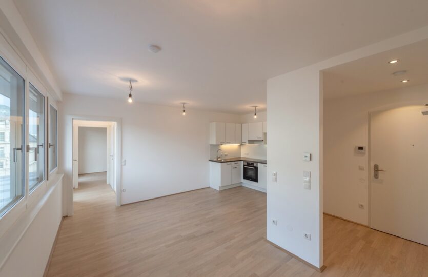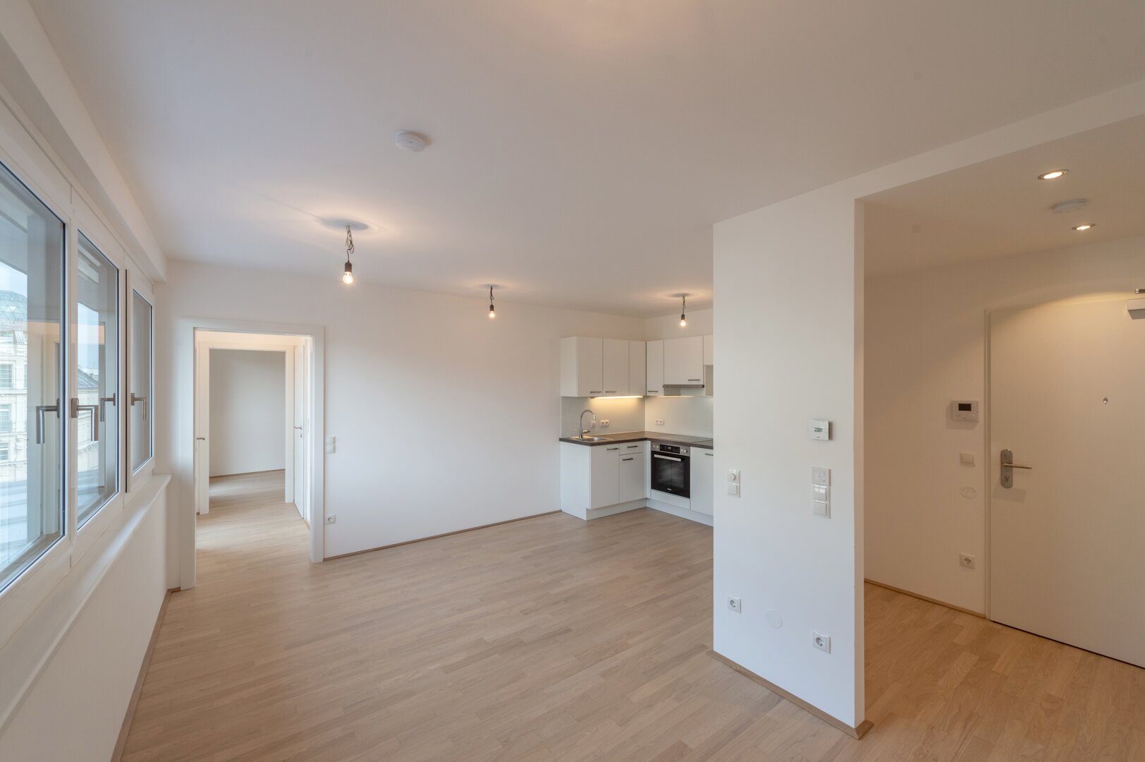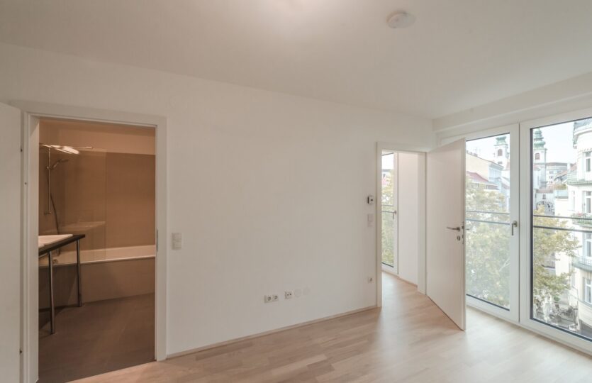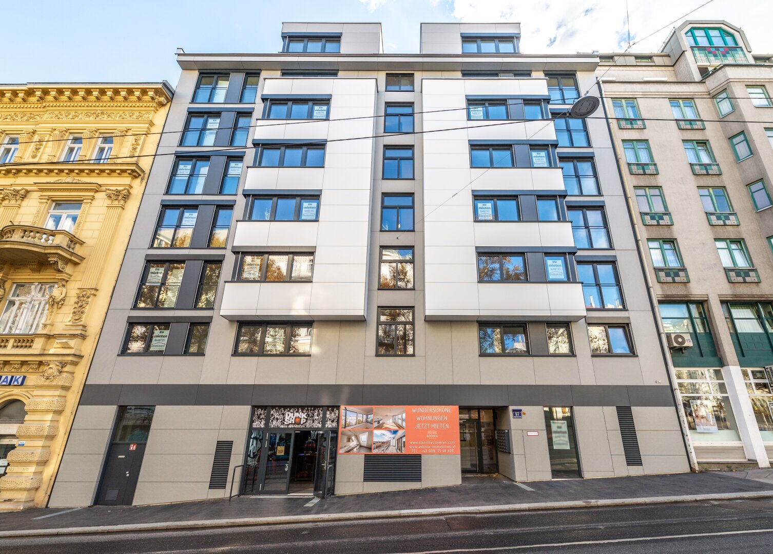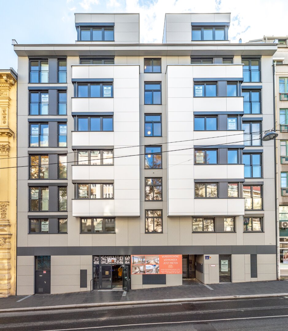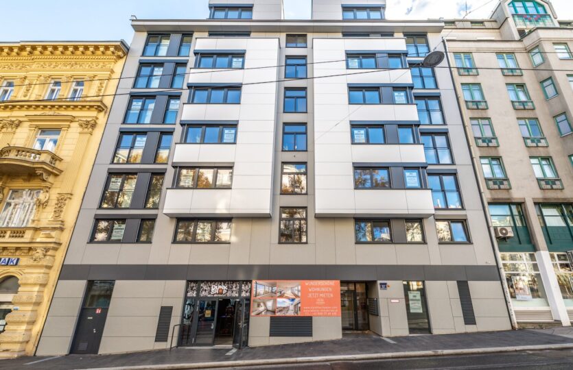 Zur befristeten Vermietung gelangt diese helle, toll aufgeteilte und sehr hochwertig ausgestattete ca. 48 m² große Neubauwohnung im 6. Stock eines im Jahr 2018 fertiggestellten Neubaus in absoluter Bestlage im 06. Wiener Gemeindebezirk, unmittelbar beim Haus des Meeres gelegen.