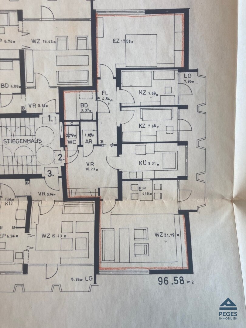 Gesucht, gefunden – diese im 1. Obergeschoß (ohne Lift) des gepflegten, kleineren Wohnhauses gelegene 4-Zimmer-Wohnung mit durchdachtem Grundriss verfügt über eine Wohnfläche von ca. 88,34 m² zuzüglich gemütlichem Balkon mit ca. 7,96 m².