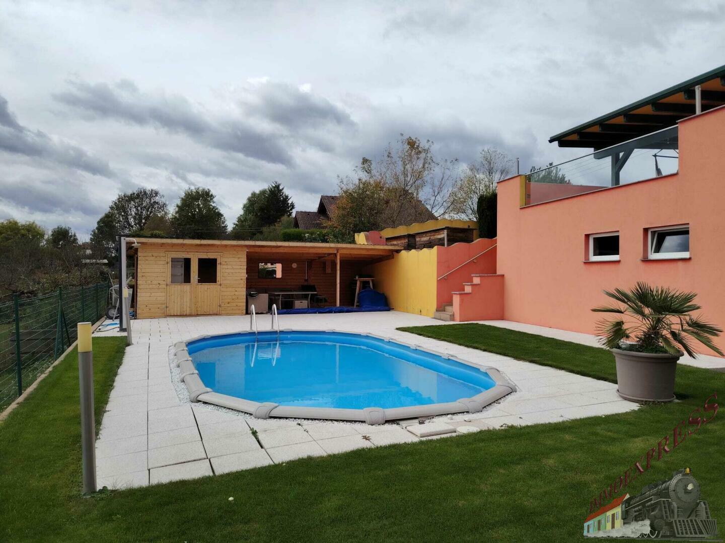 Erleben Sie sonnendurchflutete Räume, eine herrliche Terrasse mit Blick ins Grüne und Ihren eigenen Swimmingpool (7,3 m x 3,7 m) zum Entspannen und Genießen – ein echtes Paradies für die ganze Familie!
