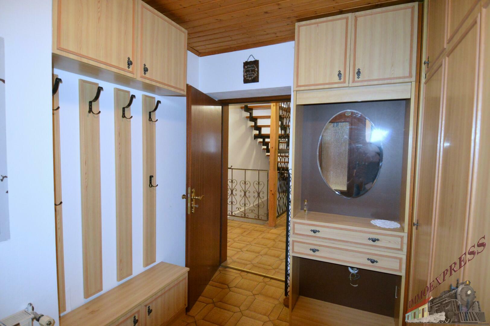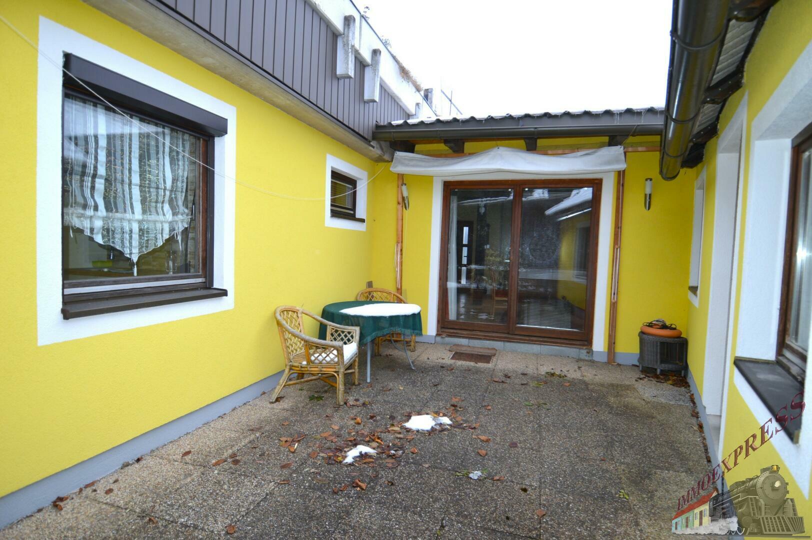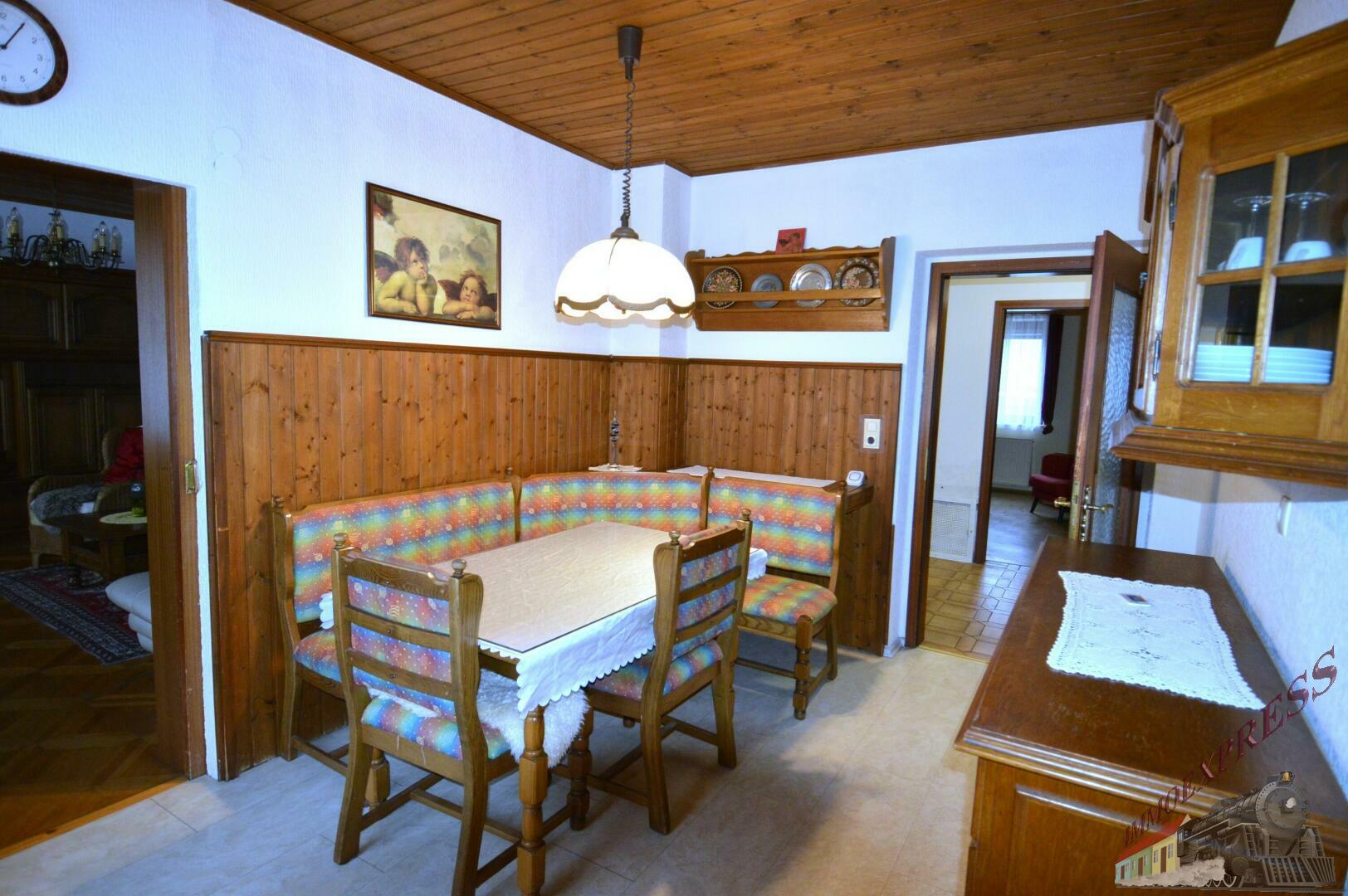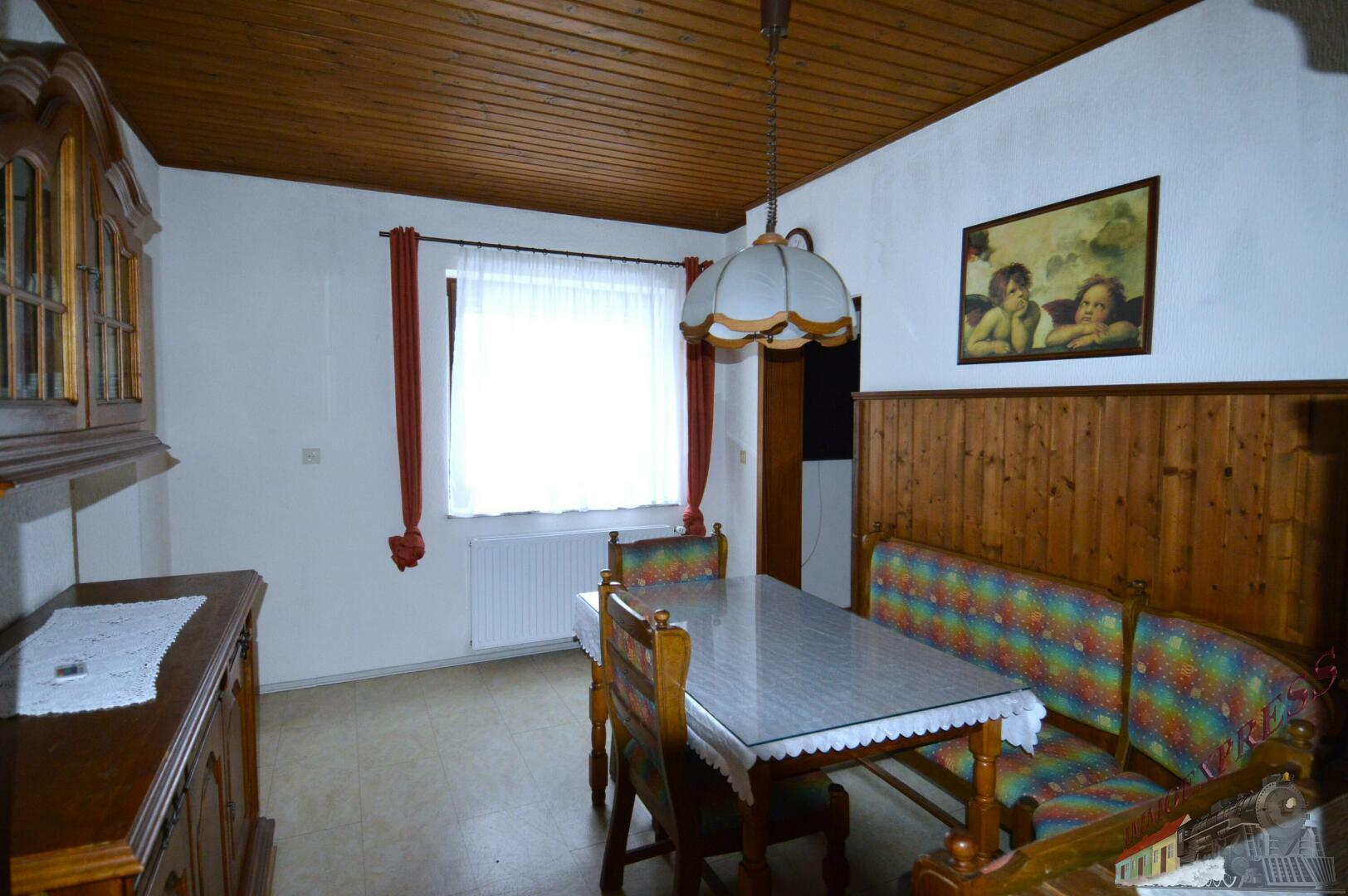 Erdgeschoß: Eingangsbereich mit großem Wintergarten, Lagerraum (könnte wieder zur Garage umgebaut werden), Vorraum, Esszimmer, Küche, Wohnzimmer, Badezimer mit Dusche – Badewanne – WC – Waschbecken und Fenster, Gästezimmer, Schlafzimmer, kleines Badezimmer mit WC