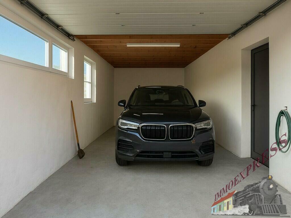 Das Untergeschoß hat einen separaten und asphaltierten Vorplatz mit einem großen Sektionaltor, damit Sie mit diversen Fahrzeugen direkt reinfahren können.