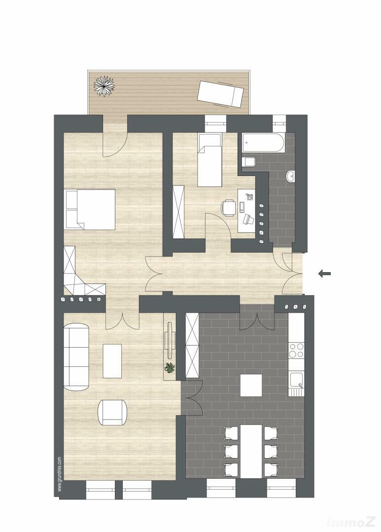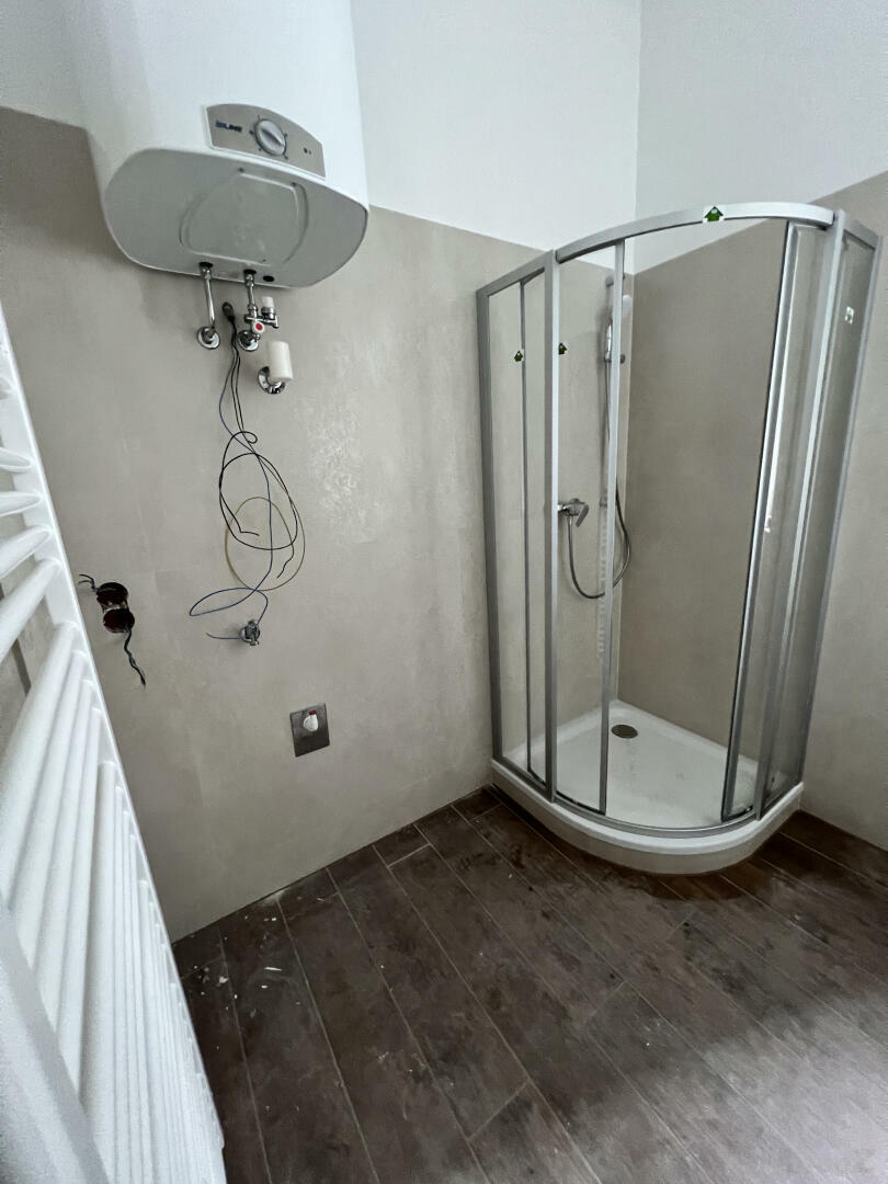 Vorraum, Badezimmer mit Dusche und inklusive WC, 3 wundervolle Altbau Zimmer (tolle Raumhöhe, Parkettboden) (2 davon mit zusätzlichem Zugang zum neu errichteten Balkon (Innenhofseitig), geräumiger Wohn-Ess-Küchenraum (unmöbliert), Kellerabteil.