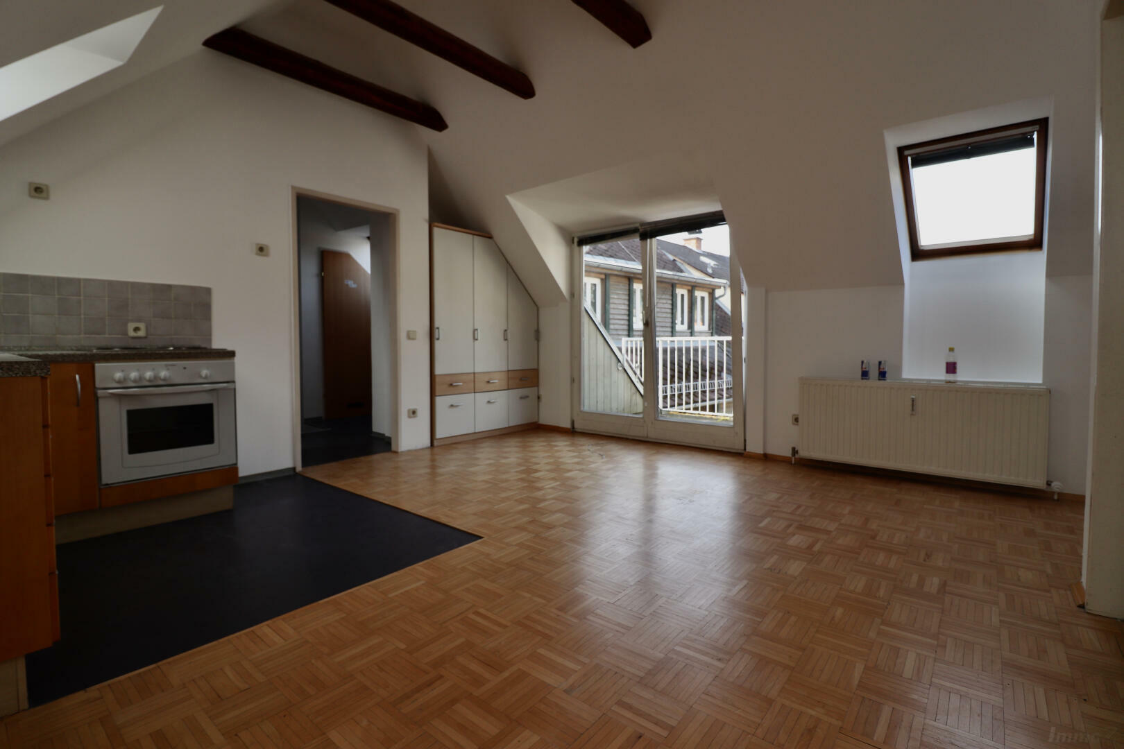 2 Zimmer Wohnung. Die Wohnung besteht aus Vorraum, Badezimmer mit WC, Abstellraum, Schlafzimmer, Ess-Wohnzimmer mit möblierter Küche. (wird neu möbliert)