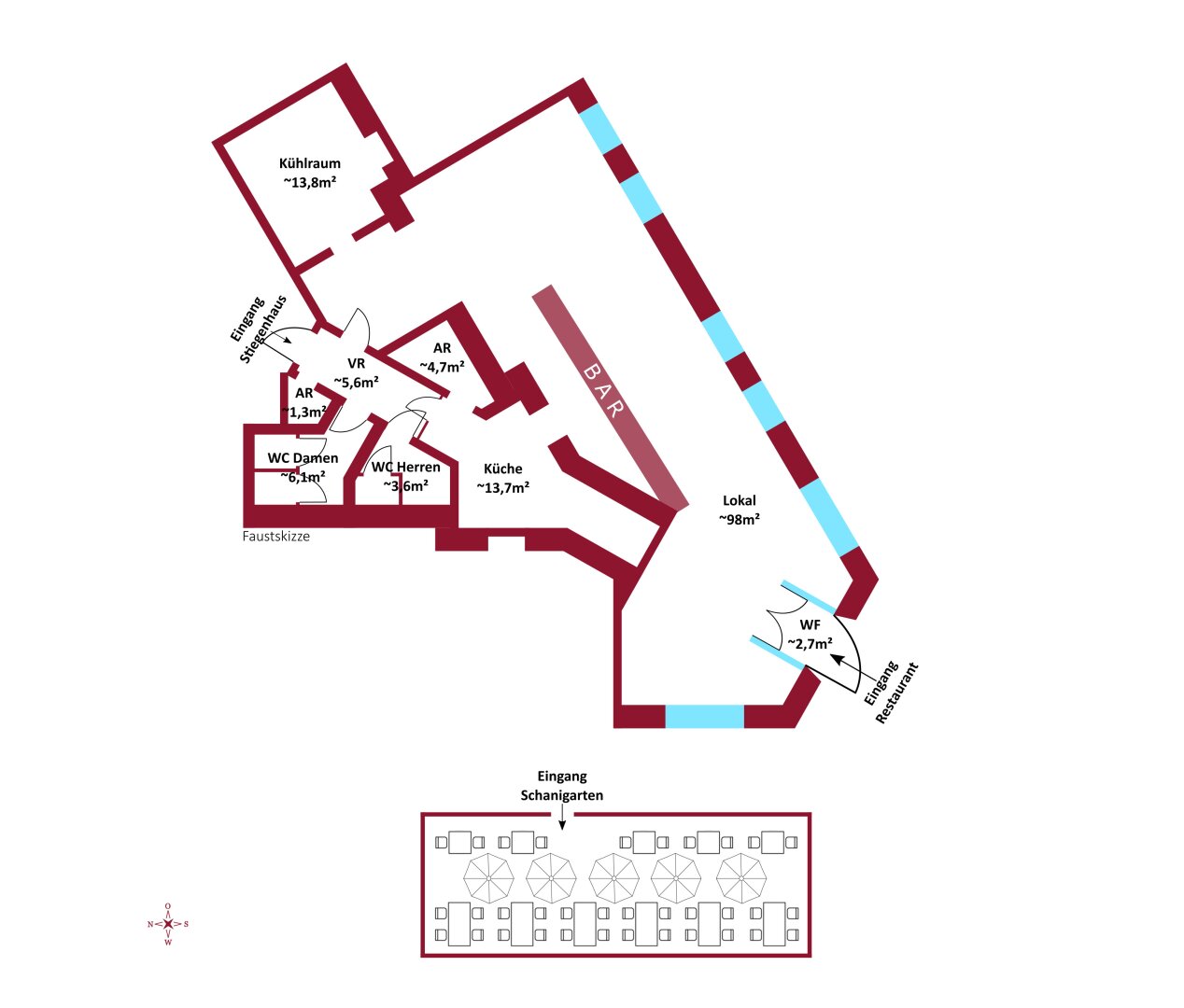 Großzügiges Gastronomielokal mit Schanigarten, Lagerraum, Küche und Keller!