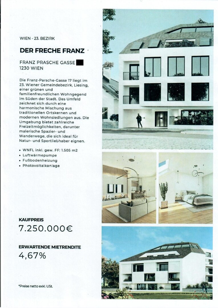 In der ruhigen Franz Parsche-Gasse im 23. Bezirk wird ein modernes Wohnhaus errichtet, das sich ideal als Investment-Projekt eignet!