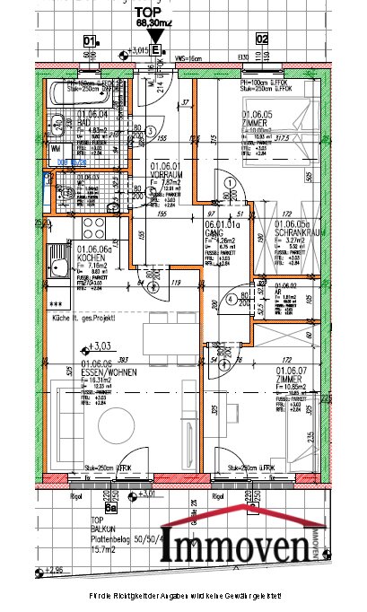 Die 3-Zimmerwohnung befindet sich im 1. Obergeschoss, bietet eine Nutzfläche von ca. 68 m² und einen Balkon.