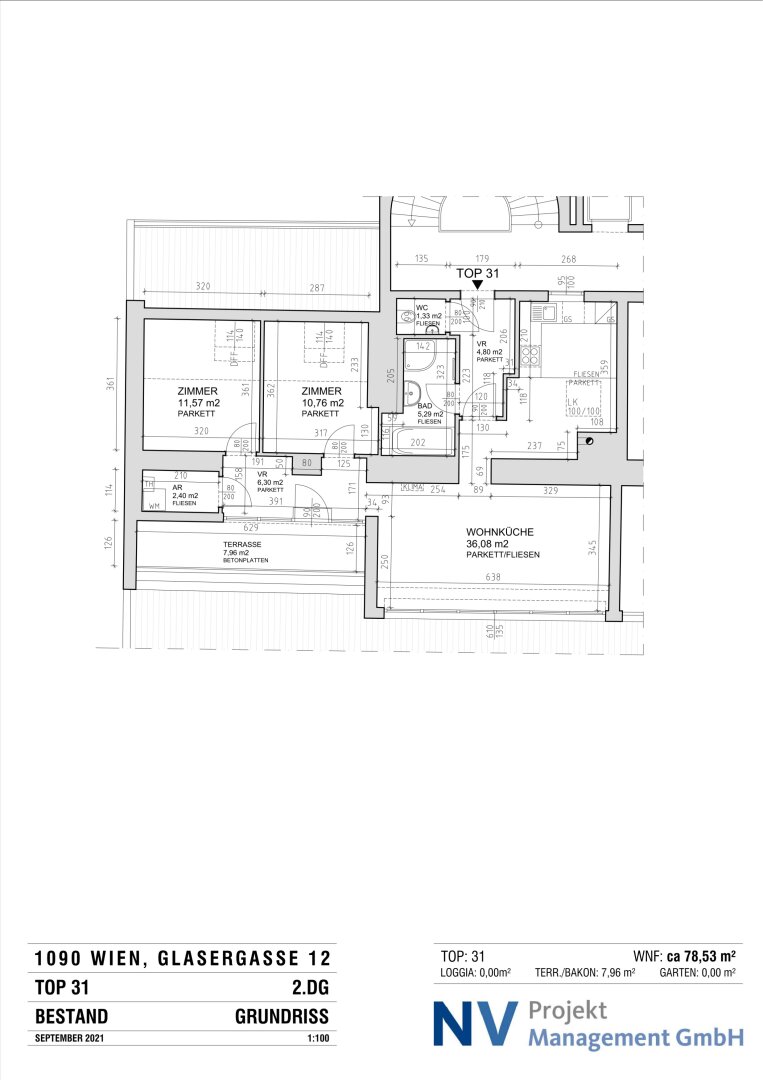 Zur Vermietung gelangt eine moderne 3-Zimmer-Dachgeschoßwohnung mit einer Wohnfläche von 78,53 m² sowie einer Terrasse mit 7,96 m².