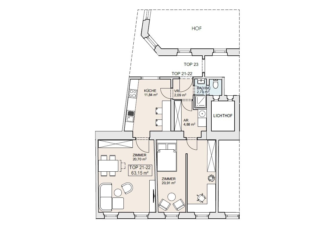 Gesamtfläche: 63 m2