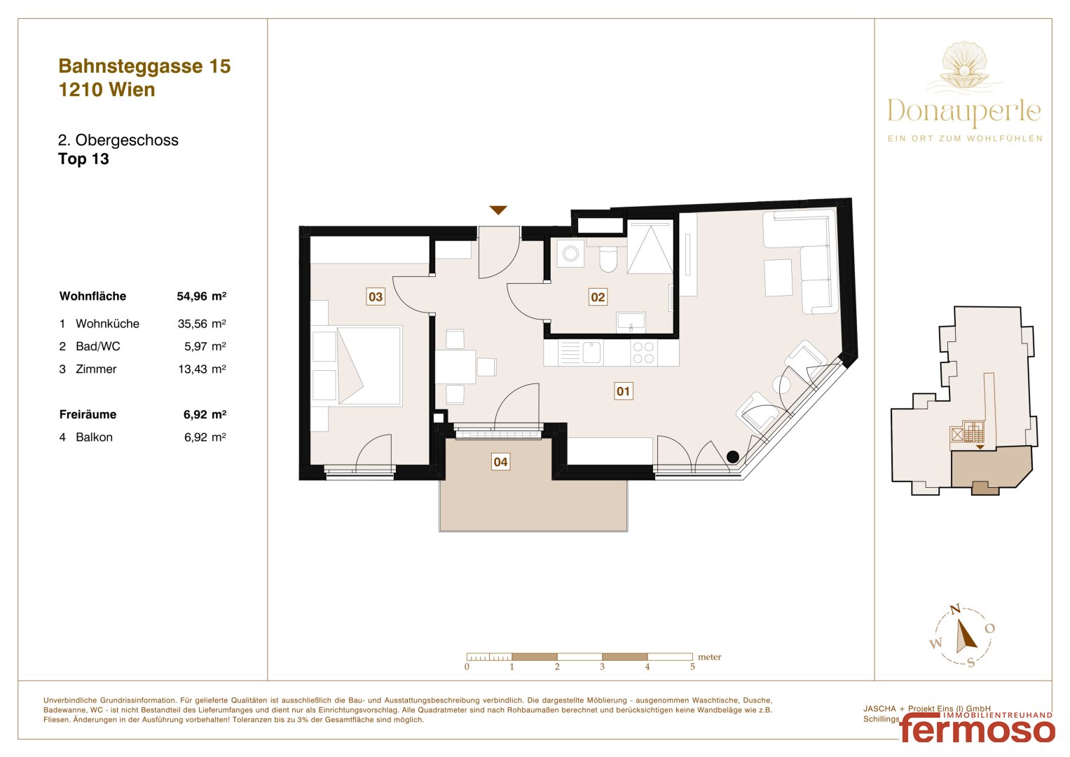 Im hochwertigen Neubauprojekt „Donau Perle“ in der Bahnsteggasse 15 erwartet Sie eine durchdacht geplante 2-Zimmer-Wohnung mit idealer