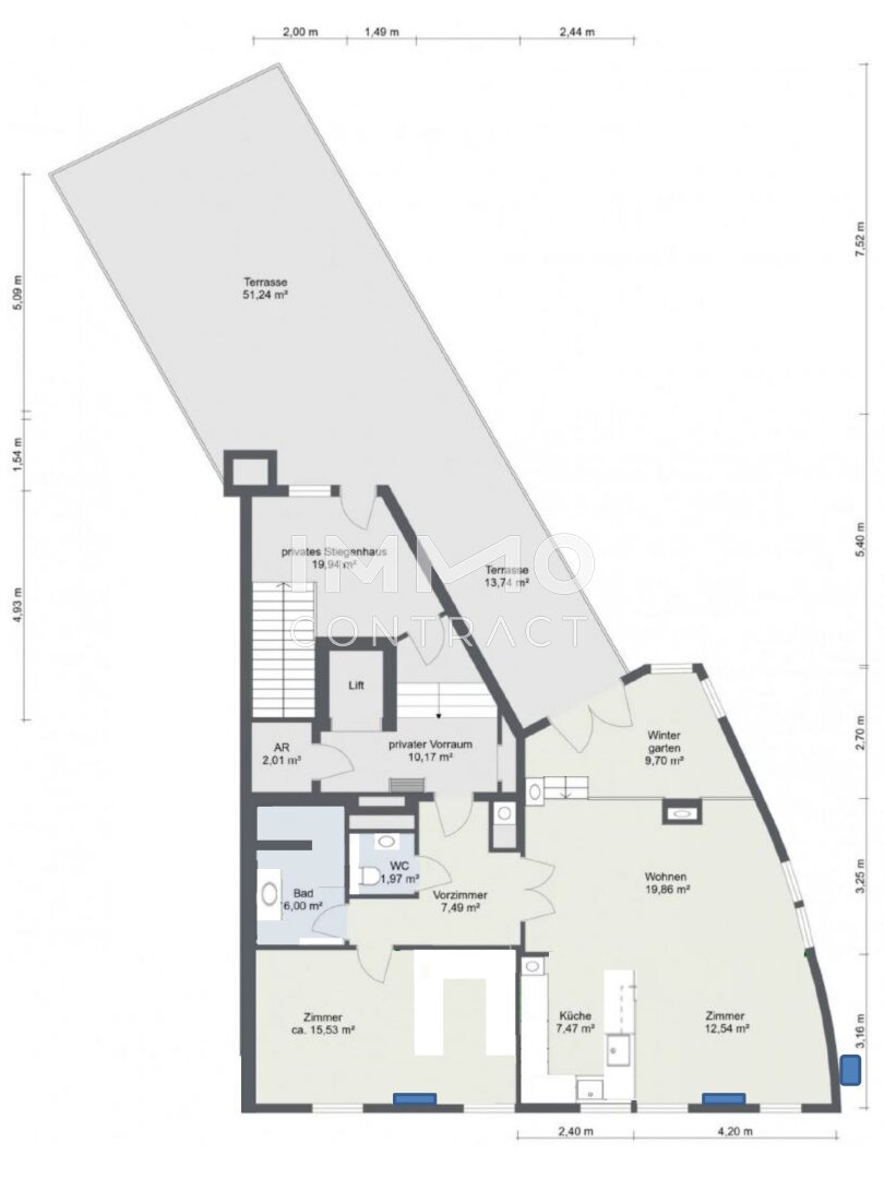 – zusätzlich privates Stiegenhaus und Vorraum mit 30 m²