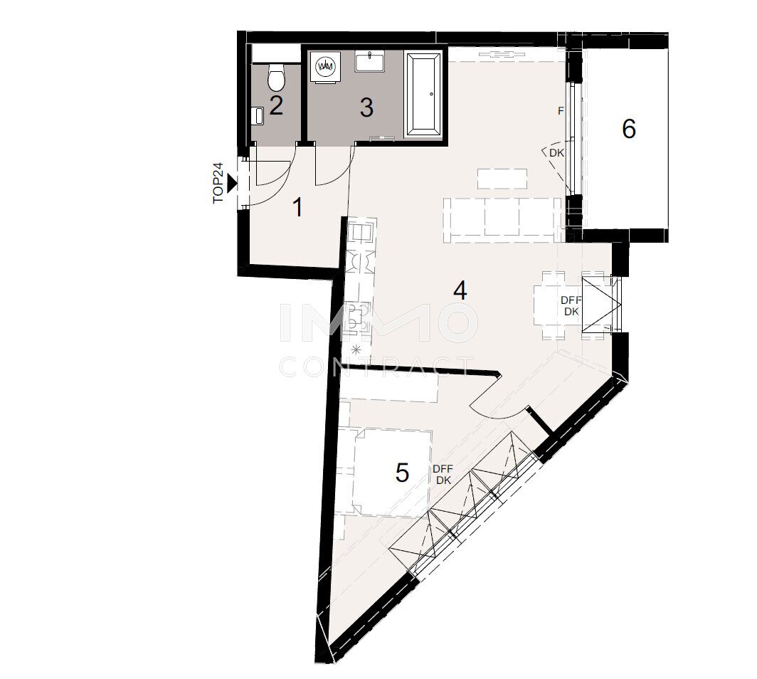 Das Herzstück der Wohnung bildet die helle Wohnküche – ideal für alle, die Kochen, Wohnen und Genießen miteinander verbinden möchten. Der großzügige Wohnbereich öffnet sich zum