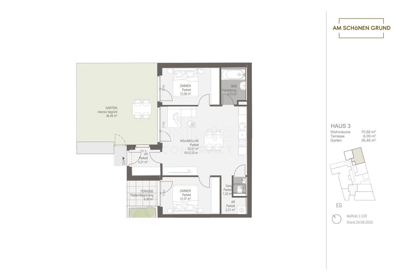 Mit dem Projekt „Am schönen Grund“ entsteht ein exklusives Wohnensemble aus 30 stilvollen Eigentumswohnungen, das urbanes Lebensgefühl mit naturnaher Wohnqualität vereint. Die Auswahl reicht von kompakten Garçonnièren für Singles oder Kapitalanleger bis hin zu großzügigen 4-Zimmer-Familienwohnungen – für jedes Bedürfnis die passende Lösung.