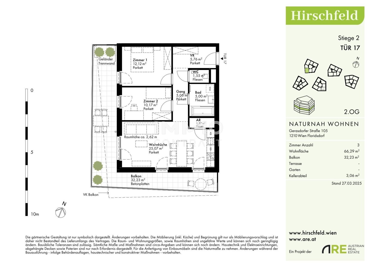 Am Rande eines weitläufigen Grünzugs, der sich bis zum Bisamberg erstreckt, entsteht im naturnahen Hirschfeld ein einzigartiges Wohnquartier: Auf drei Bauplätzen entwickelt sich ein modernes Architektur-Ensemble mit elf Gebäuden und rund 440 Wohnungen – ideal für alle, die Ruhe im