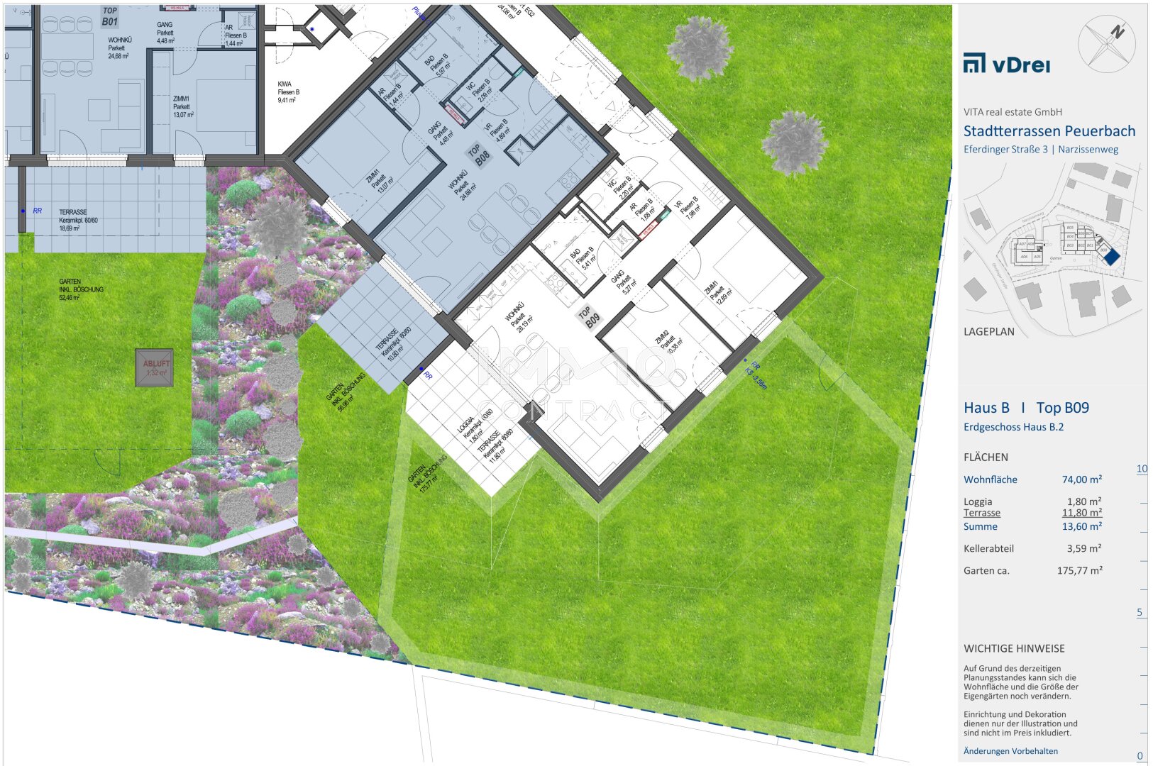 Im Zentrum von Peuerbach entstehen 32 Eigentumswohnungen mit einem Ausmaß von rund 35 m² bis etwa 117 m². Die „Stadtterrassen Peuerbach“ sind südwestlich ausgerichtet, erstrecken sich entlang des Narzissenweges und bieten einen schönen Ausblick über Peuerbach. Die zentrale Lage in Peuerbach ermöglicht Ihnen einen bequemen Zugang zu allen wichtigen Annehmlichkeiten