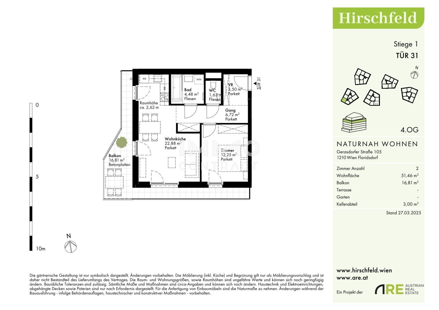 Am Rande eines weitläufigen Grünzugs, der sich bis zum Bisamberg erstreckt, entsteht im naturnahen Hirschfeld ein einzigartiges Wohnquartier: Auf drei Bauplätzen entwickelt sich ein modernes Architektur-Ensemble mit elf Gebäuden und rund 440 Wohnungen – ideal für alle, die Ruhe im