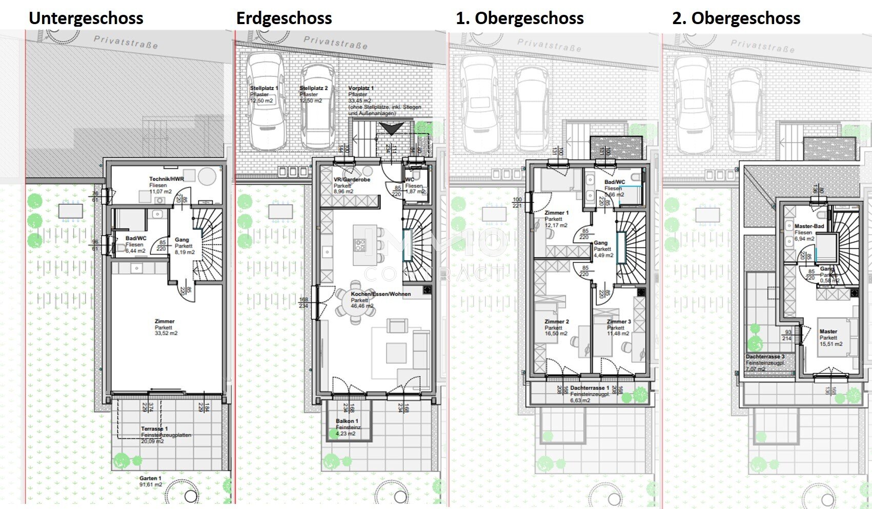 Verschiedene durchdachte Grundrisse mit 105 – 178 m² Wohnfläche stehen zur Auswahl, sodass jeder sein persönliches Traumhaus findet