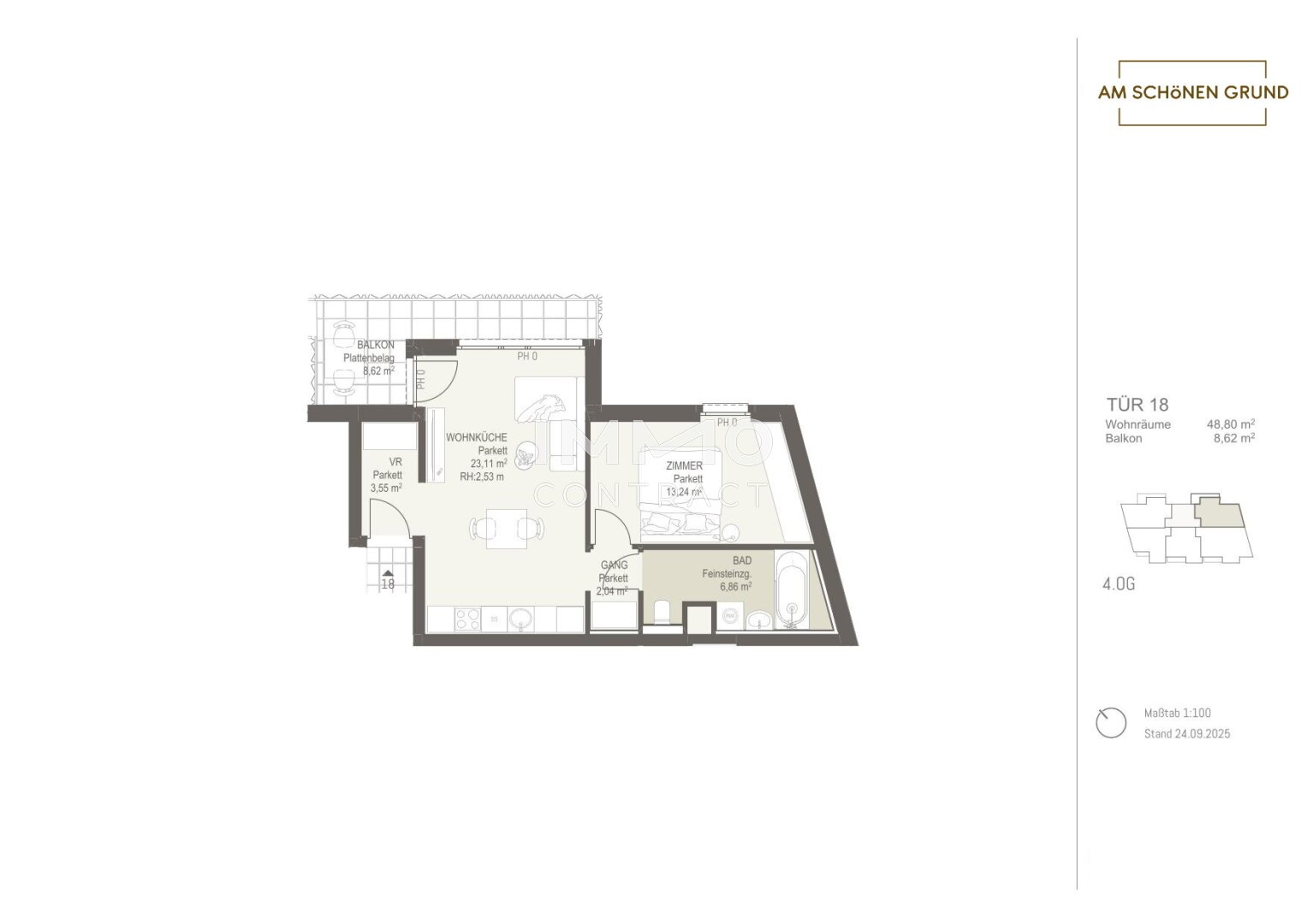 Mit dem Projekt „Am schönen Grund“ entsteht ein exklusives Wohnensemble aus 30 stilvollen Eigentumswohnungen, das urbanes Lebensgefühl mit naturnaher Wohnqualität vereint. Die Auswahl reicht von kompakten Garçonnièren für Singles oder Kapitalanleger bis hin zu großzügigen 4-Zimmer-Familienwohnungen – für jedes Bedürfnis die passende Lösung.