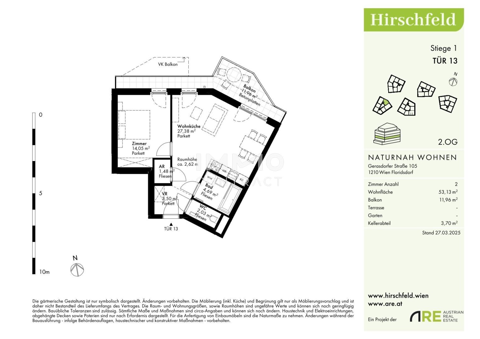 Am Rande eines weitläufigen Grünzugs, der sich bis zum Bisamberg erstreckt, entsteht im naturnahen Hirschfeld ein einzigartiges Wohnquartier: Auf drei Bauplätzen entwickelt sich ein modernes Architektur-Ensemble mit elf Gebäuden und rund 440 Wohnungen – ideal für alle, die Ruhe im