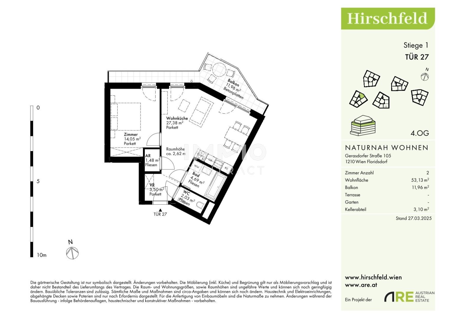 Am Rande eines weitläufigen Grünzugs, der sich bis zum Bisamberg erstreckt, entsteht im naturnahen Hirschfeld ein einzigartiges Wohnquartier: Auf drei Bauplätzen entwickelt sich ein modernes Architektur-Ensemble mit elf Gebäuden und rund 440 Wohnungen – ideal für alle, die Ruhe im